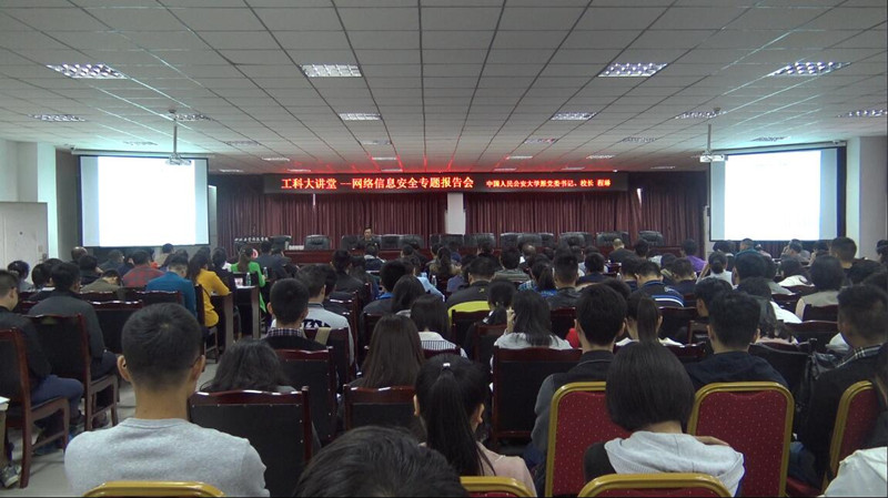10月24日上午,学校特邀中国人民公安大学原党委书记、校长程琳研究员做客工科大讲堂,在图书馆408会议室作了“网络信息安全”专题报告会,全体校领导、科级以上干部、网络管理与电教中心全体人员、辅导员及电子信息工程学院相关专业学生200余人聆听了报告。学校党委书记、校长唐健禾主持报告会。