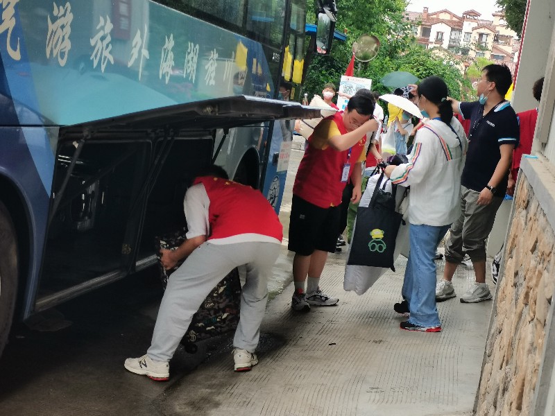 尽管细雨绵绵且转运至龑江公寓的新生数量很大,可是转运现场却秩序井然。学生处张耀峰老师凭借丰富的校内新生转运工作经验,有序指挥着学生志愿者先将需要转运至龑江公寓的新生带入候车区列队等待,且安排学生用小喇叭多次提示新生“到龑江公寓和骄子公寓乘坐的是不同的车辆,这边是到龑江公寓的,切勿坐错车辆。”等校内中转车辆开至指定位置后,再引导新生依次乘车和帮助新生装运行李,待车内满员且行李清点完整后便通知行车司机出发。