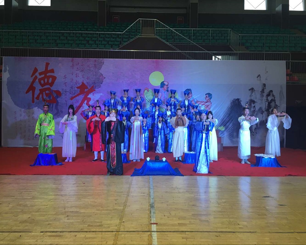 置身于演出现场,身着古装的同学们抑扬顿挫地朗诵着德孝诗词,手中毛笔挥洒出遒劲有力的德孝诗篇,让人仿佛回到千年以前,在悠远的歌声中慢慢触碰那亘古不变的德孝精神和我国的经典传统文化。一袭红衣的舞者迎着背景音乐翩然起舞,将演出氛围推向高潮。