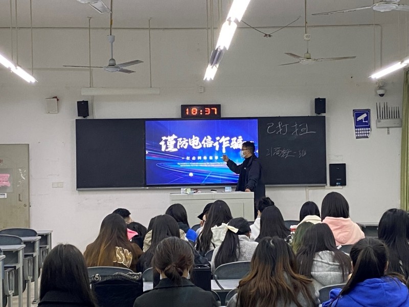 学生工作部(处)持续强化学生安全职责,随时关注反诈骗讯息并分享至二级学院书记群,同时联动各二级学院和学校安保处,结合典型诈骗案例,借助周末主题班会,组织辅导员开展反诈骗宣传教育活动,邀请属地万安派出所民警在班会上进行“反电诈、禁毒”宣传讲座,深入推广宣介防诈骗知识与技巧,积极营造警校协力、师生同心反电诈氛围,有效提升全体学生的反诈意识和防骗技能。