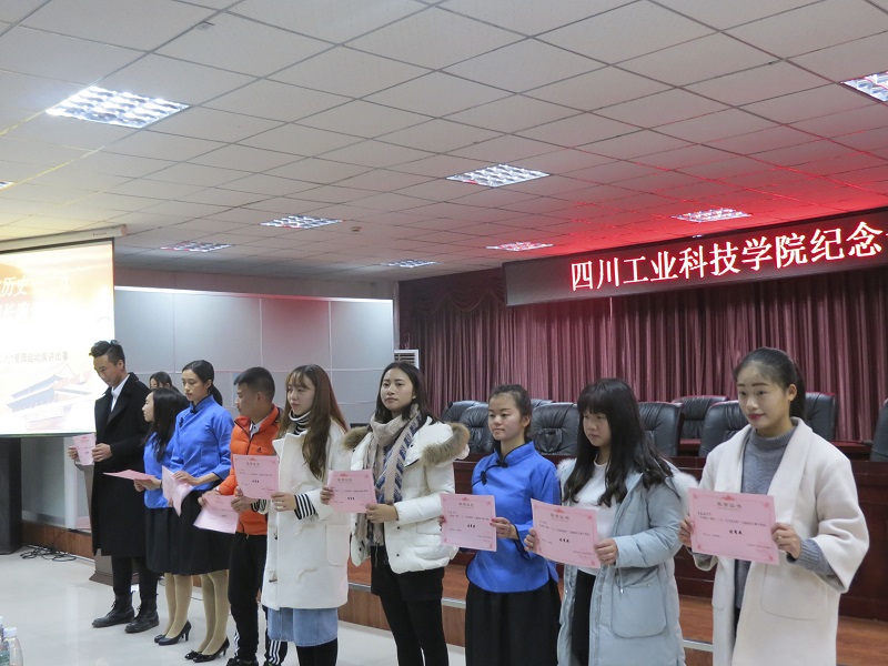 回眸历史一二九,今朝长跑爱国情。2016年12月8日,由共青团四川工业科技学院委员会主办的纪念“12·9”爱国运动演讲比赛在我校图书馆D–408顺利举行。此次比赛由团委张彬老师、财经学院刘琴老师、校学生会秘书长黎贤良、副主席李云、办公室部长汪新欣担任评委。