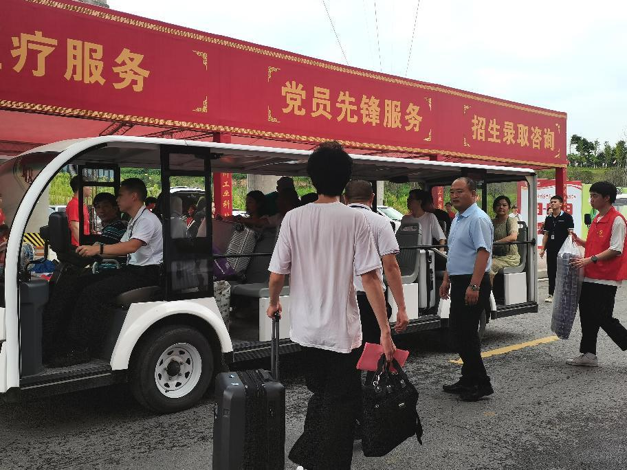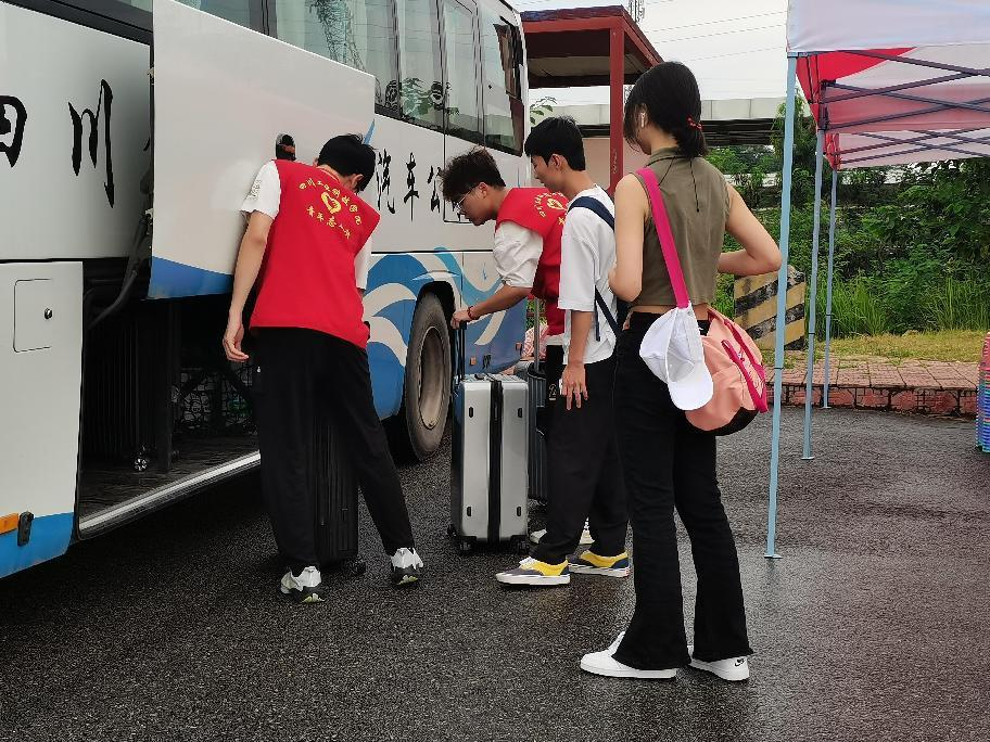 为确保前来报到的小萌新们顺利抵达学校,学校在火车北站(含德阳城北客运站)、德阳汽车南站、罗江区高铁站、罗江区汽车站设立了新生接待服务点,学生处在每个接待点均安排了专人全过程全时段负责新生接站工作。在带队教师的指挥下,学生志愿者高举“四川工业科技学院”引导牌喜迎新同学出站乘车,有条不紊做好出站引导、行李装运、车辆对接、疑惑解答等接站服务相关事宜,用情用心用力搭建起一条畅通无阻、充满温情的新生入学服务便捷通道。