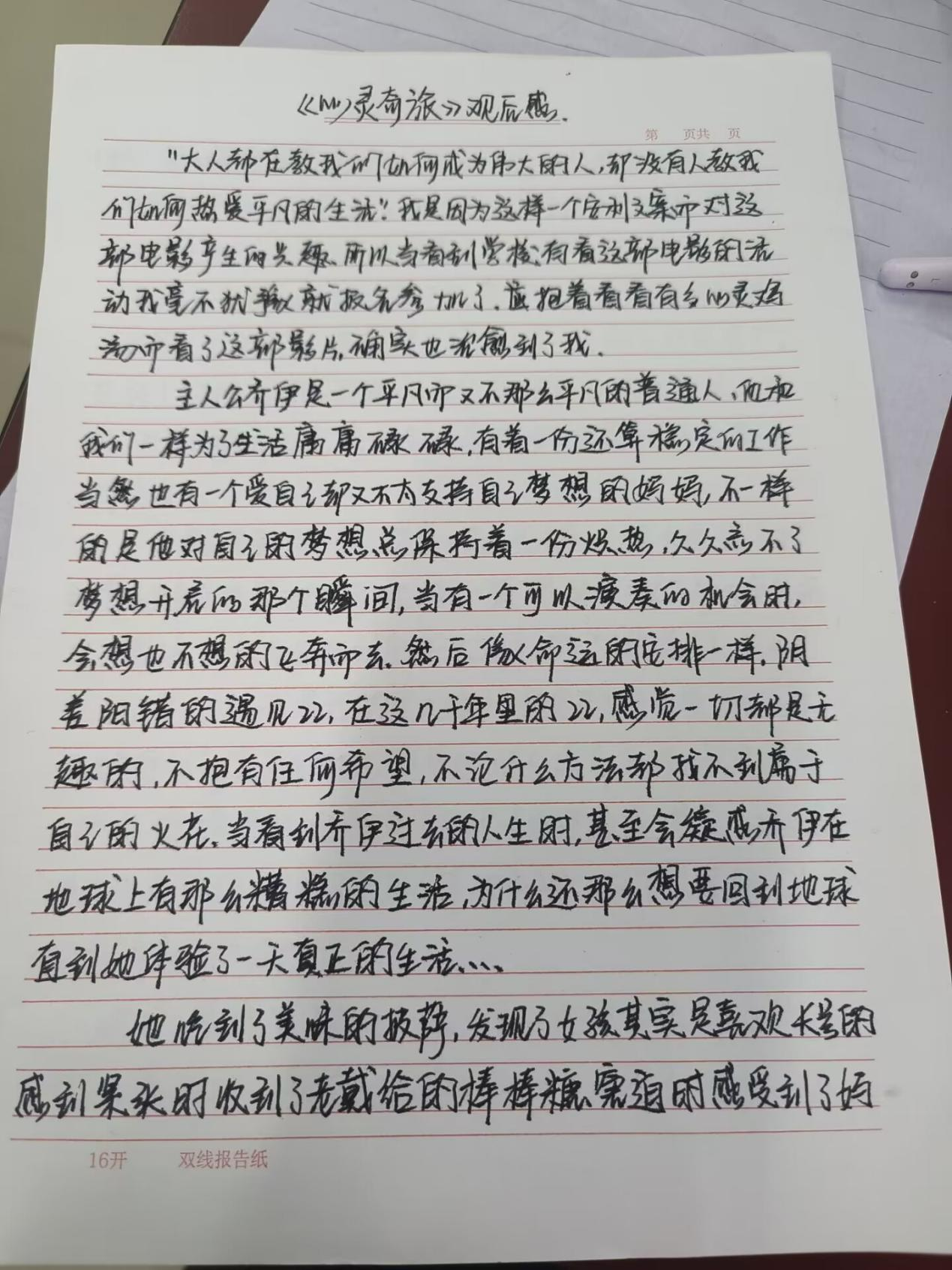 结合学生心理健康教育内容和广大学生观影喜好,在活动中播放了2020年由华特迪士尼公司和皮克斯动画工作室联合出品的奇幻动画电影《心灵奇旅》。该部影片不仅深受广大学子的喜爱与好评,而且呈现的毕加索立体主义想象画风,完美诠释了以美润心的教育实效。同时,在观影结束后,学校心理协会组织观影学生撰写了《心灵奇旅》观影感,促使学生将观影感悟融入日常生活,促建健康向上、积极进取的校园文化氛围。