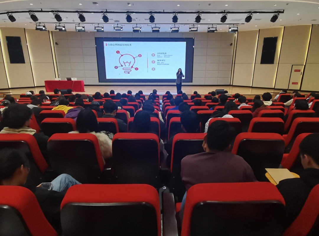 邱旎丽结合多年心理辅导实战经验,紧扣青年学子的心理健康教育,以《用心理学助力阳光大学生活》为题,满怀热情对工科学子们进行了“怡心一意”心理辅导。通过现场随即采访的方式,精准了解当前大学生在适应、学业、恋爱、人际交往、生活规划等方面的心理困惑,用生动有趣的语言认真分析日常影响大学生心理状态的生理、心理、家庭、学校和社会因素,引导学子们在学习心理学知识、参加实践活动、增进人际交往、自我心理调适和寻求专业心理服务中对己排忧解惑、认真快乐生活。现场氛围热烈,欢声笑语不断,学子们收获颇丰。
