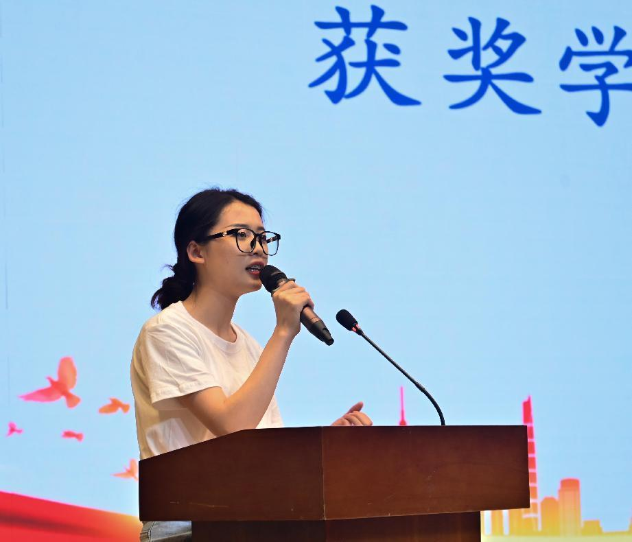 按照活动安排,获奖学生代表肖奕秋发表了获奖感言,她呼吁全体同学,在党和国家的绿荫下追逐自我梦想的同时,应当为社会、为国家尽一份绵薄之力,用实际行动践行“滴水之恩,当涌泉相报”。