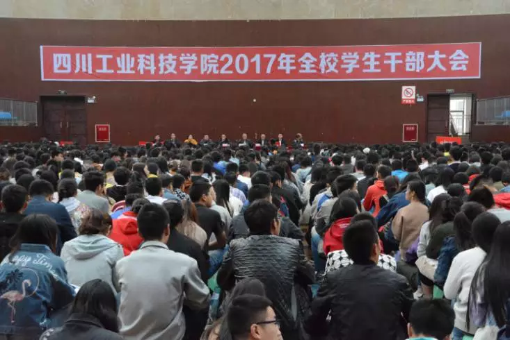 今天下午15:30,为深入贯彻十九大精神,“四川工业科技学院2017年全校学生干部大会”在体育馆顺利召开。学校党委副书记马小红、学生处副处长彭久军、各二级分院分管学生工作领导学工部全体成员以及全校学生干部参加了此次会议。