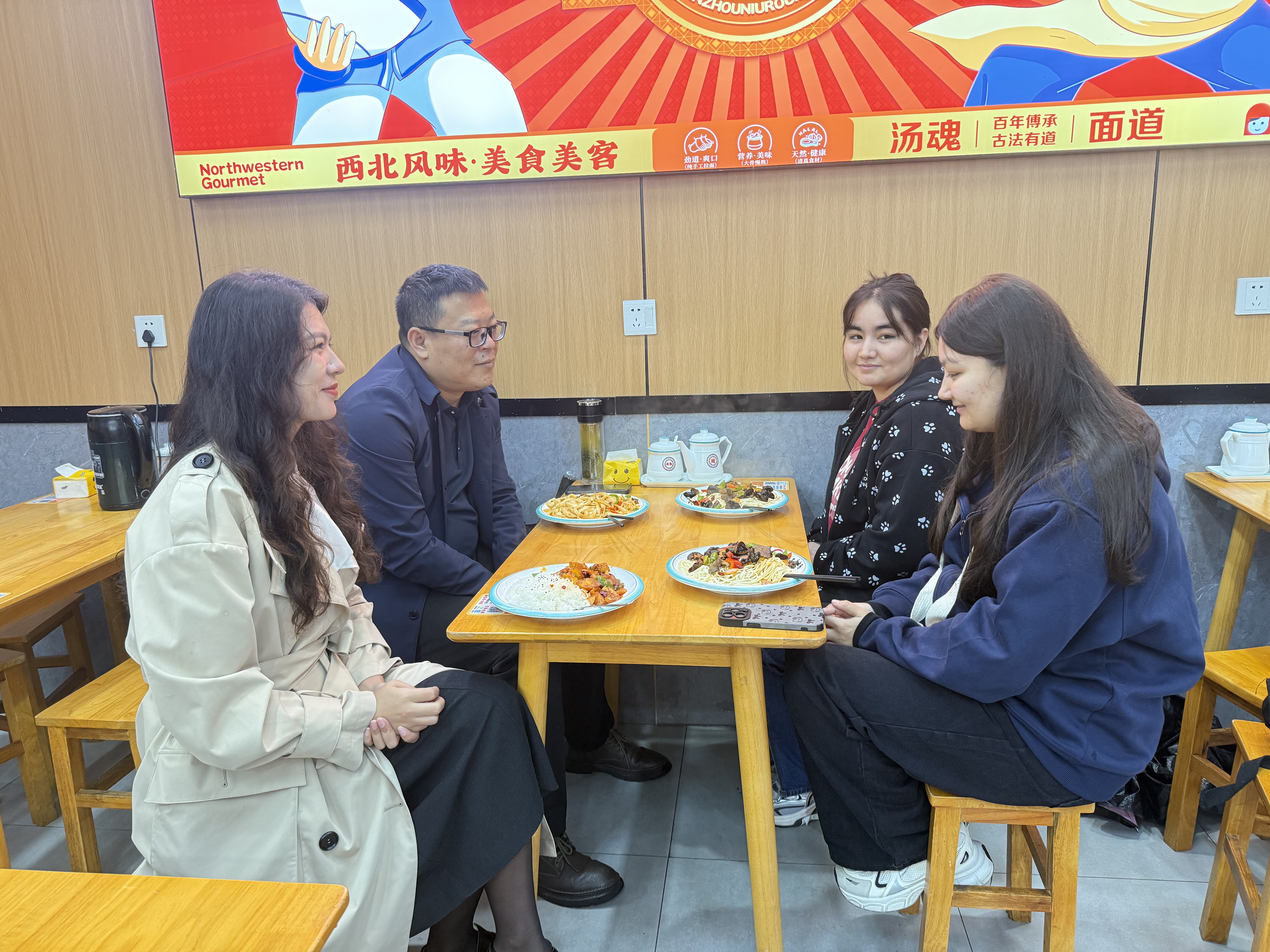 座谈结束后,刘冬实地走访了学生食堂等地,与民族学生共进午餐。用餐期间,刘冬亲切地与学生交流,询问他们来校后的生活和学习情况,进一步了解民族学生服务保障情况。