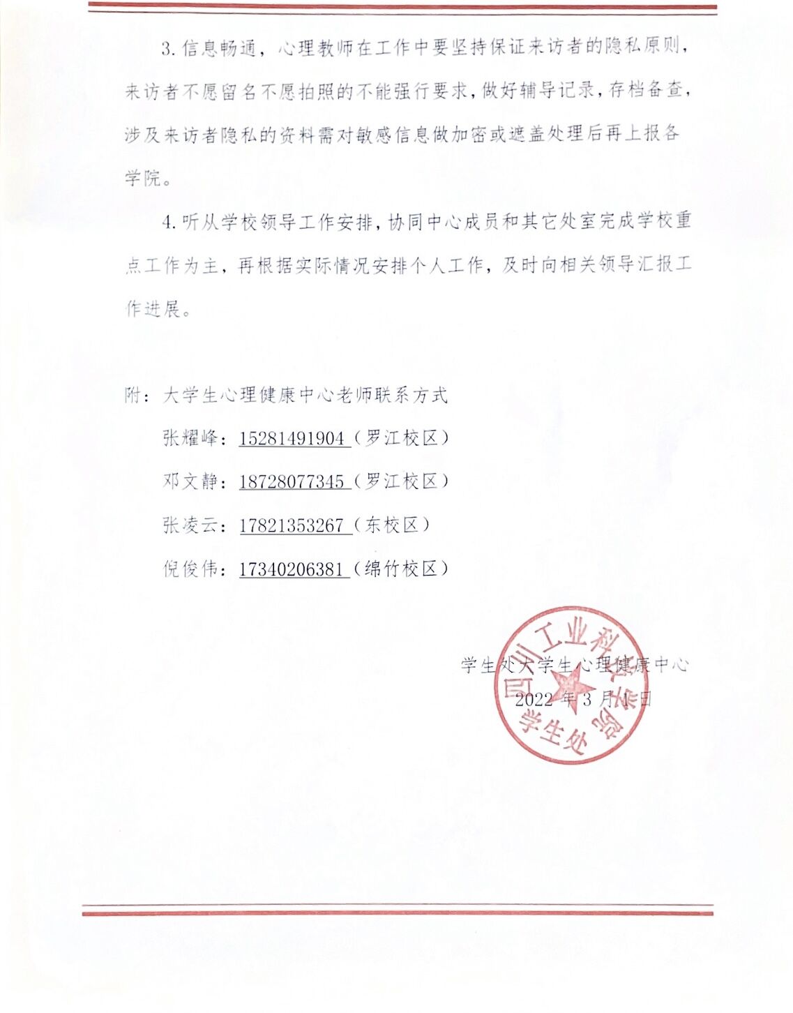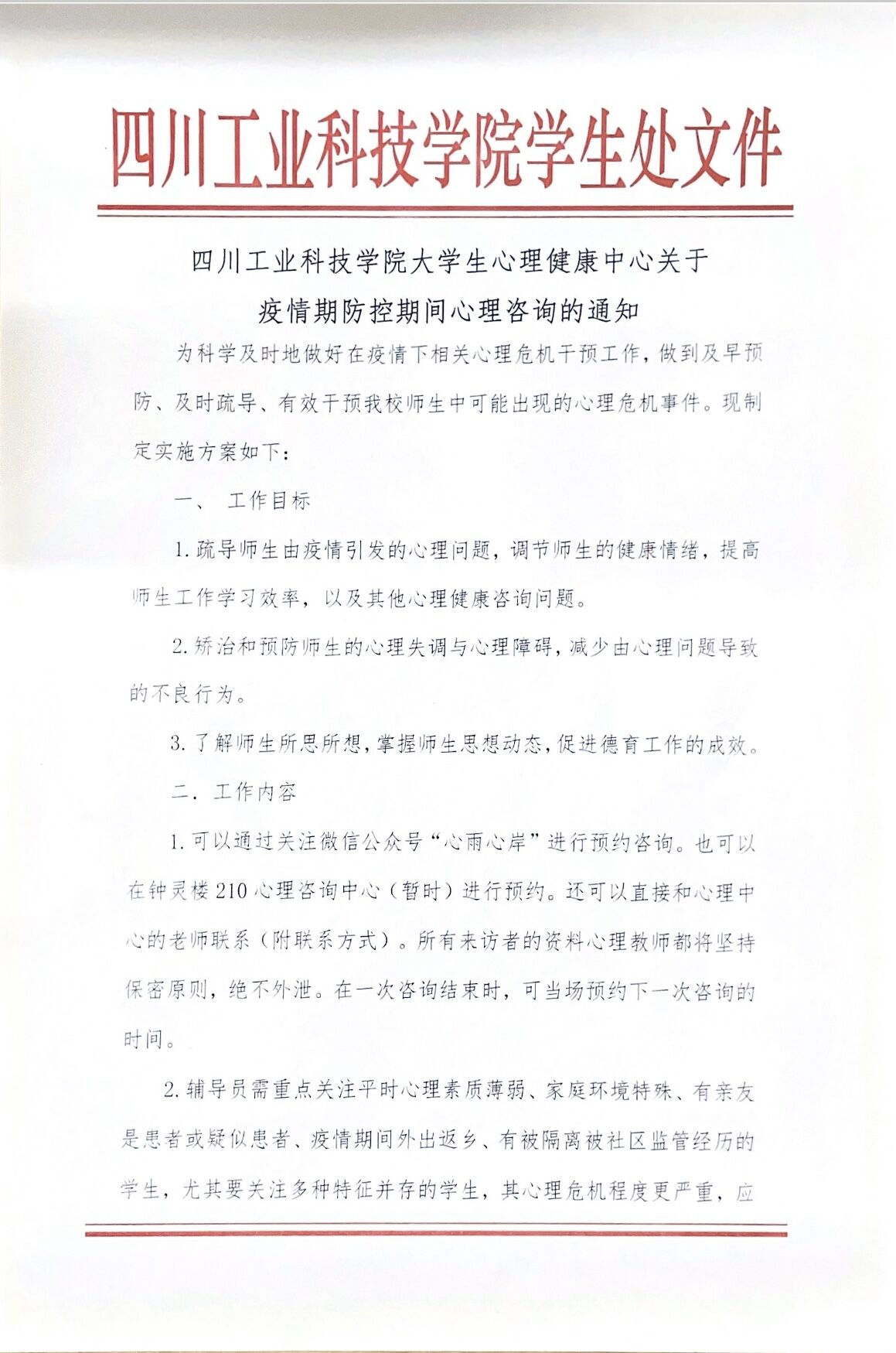 四川工业科技学院大学生心理健康中心关于疫情防控期间心理咨询的通知