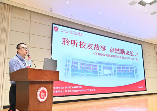 刘刚毅以“星辰大海,始于脚下;不驰于空想,不骛于虚声”为主题,深情回顾了从四川工业科技学院求学时的青葱岁月到职场精英的奋斗历程,为学弟学妹们分享了在校园中如何打造自己的竞争力、如何适应未来职场的方法,以亲身经历诠释了读懂自己、杀手锏级别技能、打造差异化竞争优势、能力的重要性、学习+目标双平衡等方法的有效性,用真诚和热忱点燃了在场师生的追梦之心。