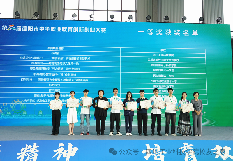 5月27日,第二届德阳市中华职业教育创新创业大赛决赛在学校举行,学校项目《驭流者》凭借前瞻性技术设计与产业化潜力,最终突出重围斩获一等奖。