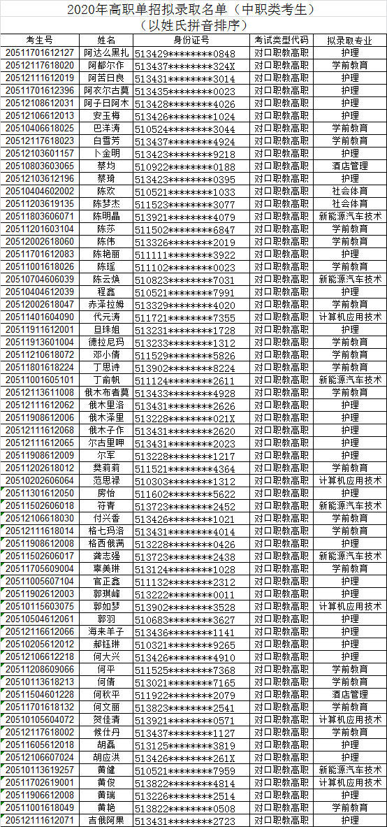 四川工业科技学院2020年高职单招考试拟录取名单公示
